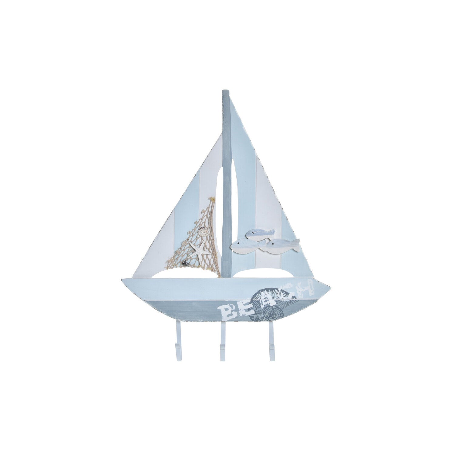 PERCHERO PARED MADERA METAL 43X4X56 VELERO AZUL