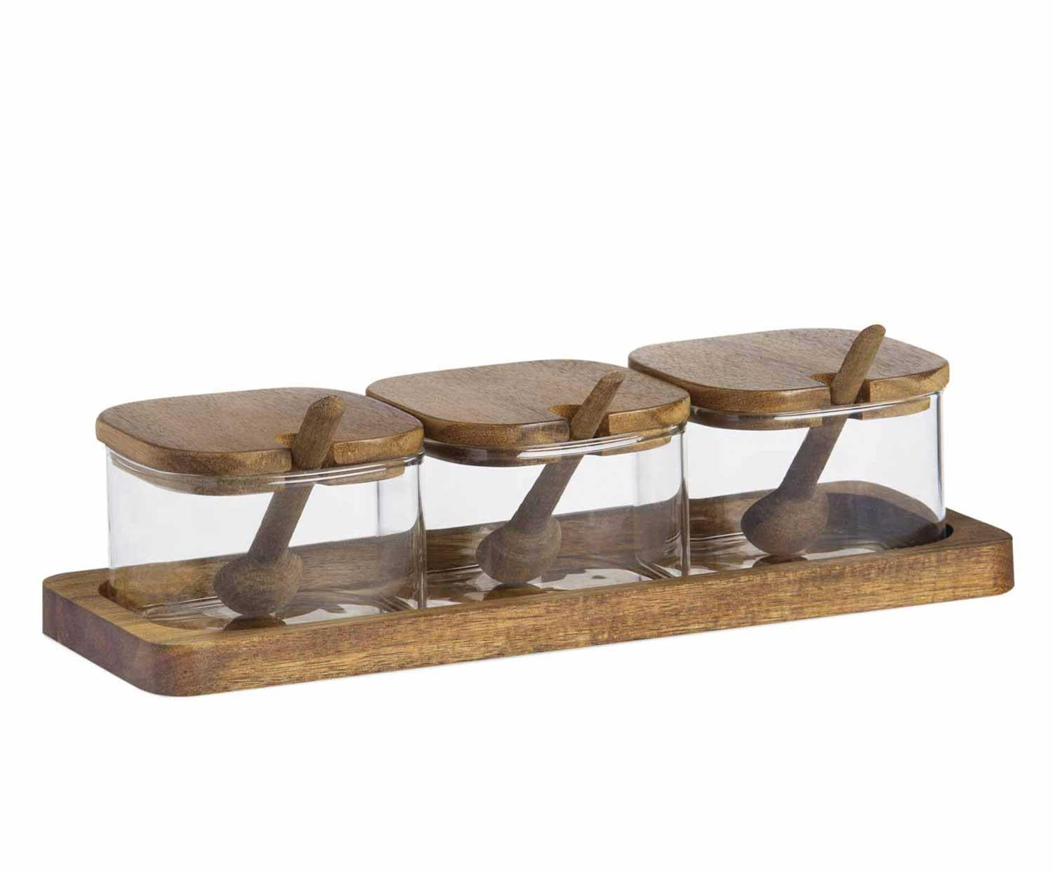 S/3 TARROS VIDRIO C/CUCHARA ACACIA