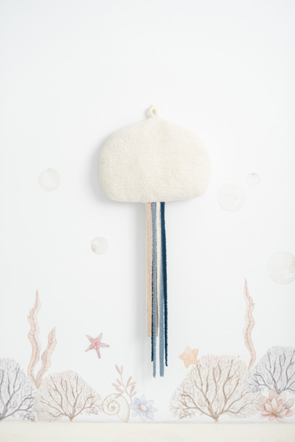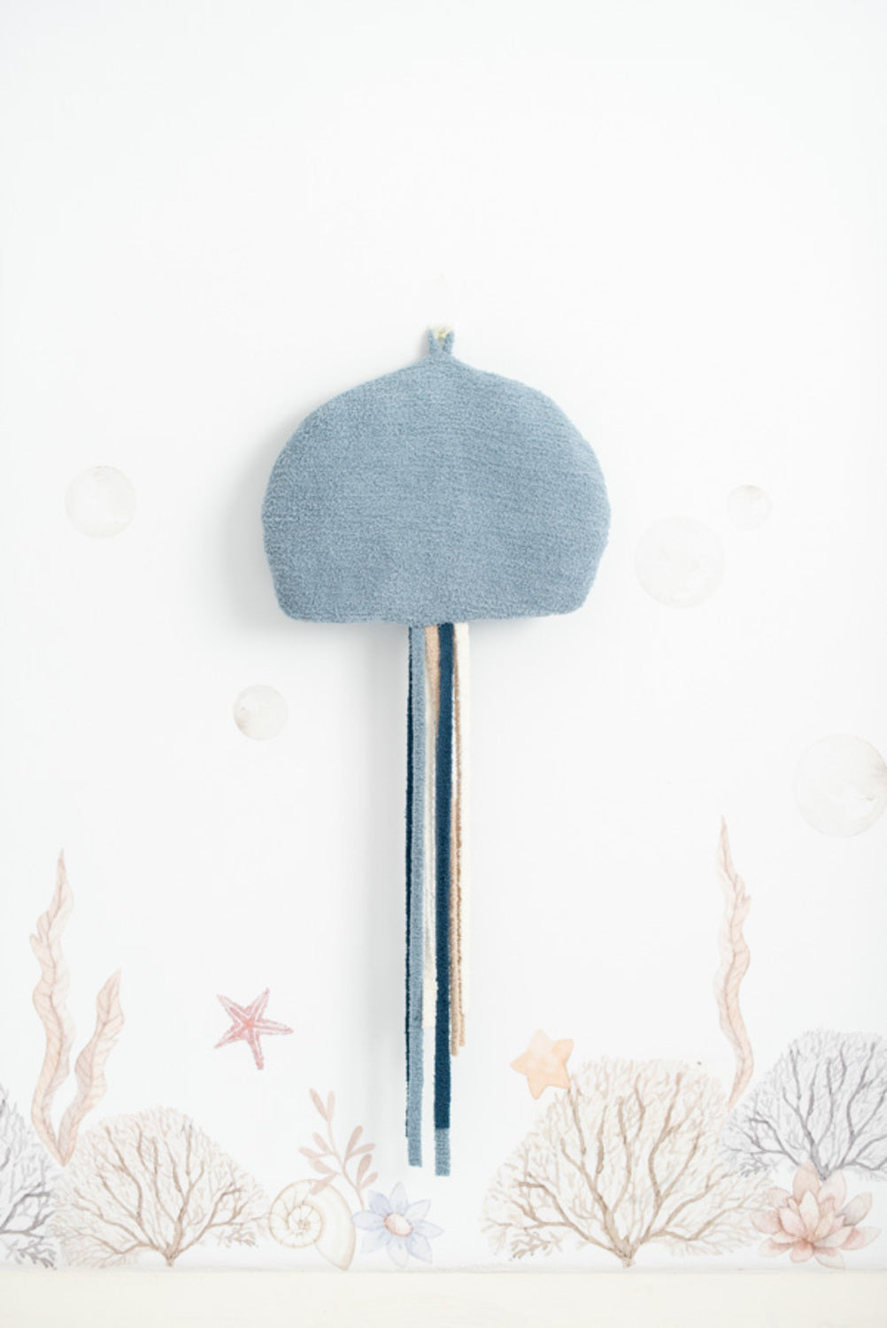 Set 3 peluches infantiles de pared formado por medusa azul: medusa blanca y mantarraya azul claro