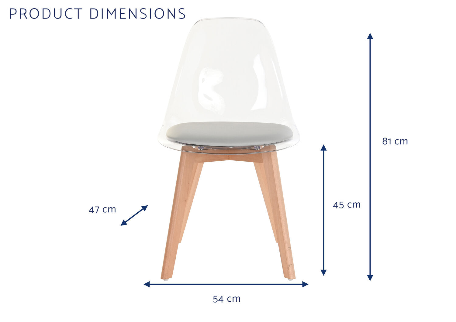 SILLA POLICARBONATO MADERA 54X47X81 TAPIZADO GRIS